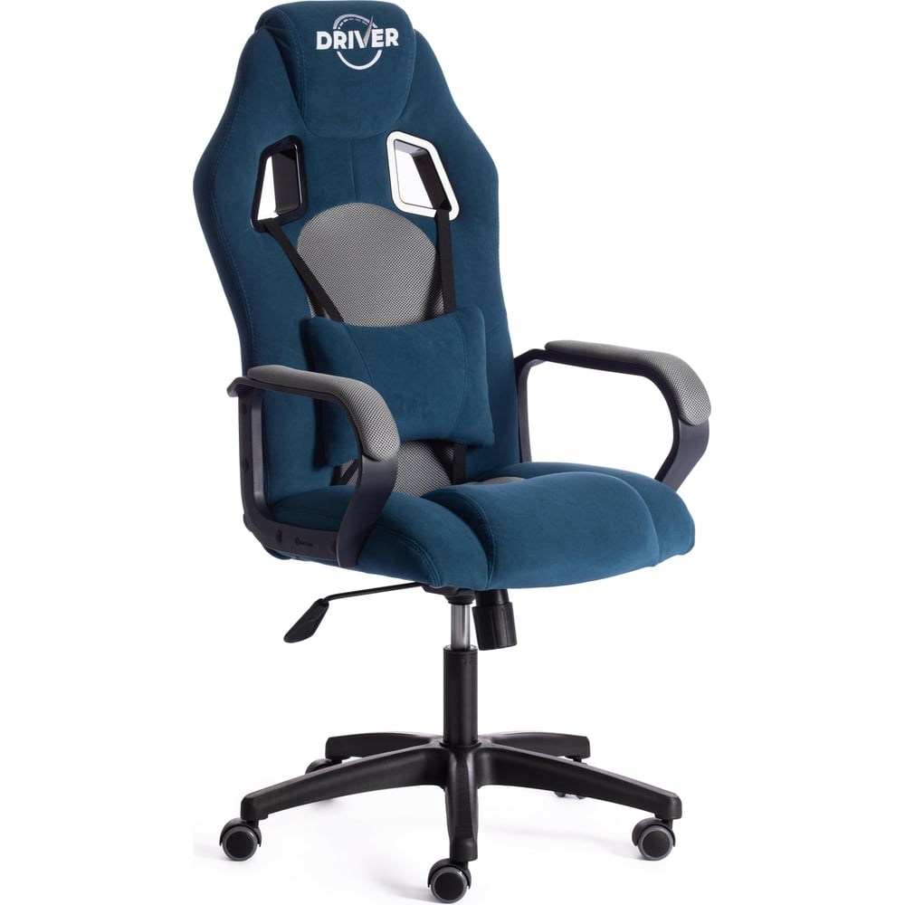 Кресло Tetchair driver 22 флок/ткань, синий/серый 32/tw-12 19294 удачно сочетает в себе черты функциональности и элегантности. Благодаря своему презентабельному внешнему виду модель отлично впишется в интерьер. Каркас кресла выполнен из крепкого пластика и фанеры. Такие материалы отличаются повышенной прочностью и основательностью. Мягкая обивка на пластиковых подлокотниках создает дополнительный комфорт при длительной работе. Кресло оснащено прорезиненными роликами, которые обеспечивают подвижность кресла и не повреждают паркет или ламинат. Механизм качания с фиксацией в вертикальном положении при помощи специального надежного механизма.