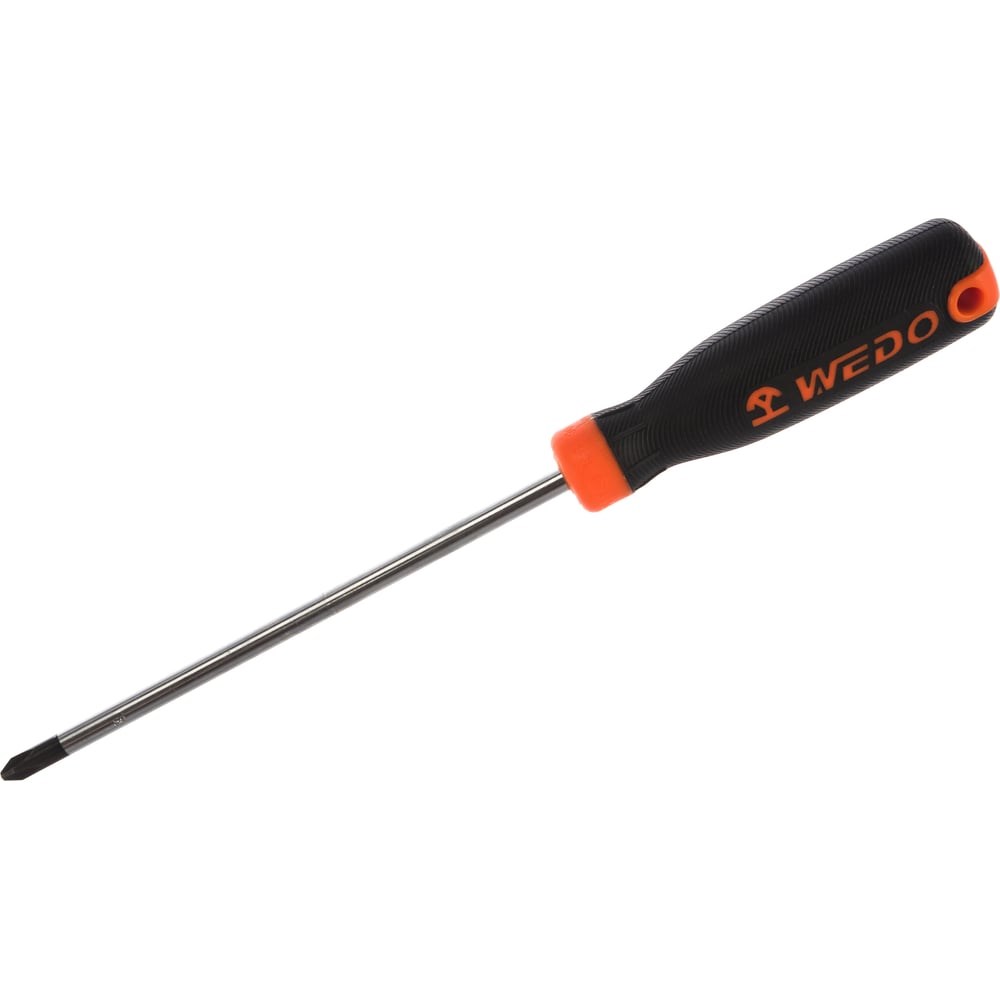 Крестовая отвертка WEDO PH2X150 WD611-26 имеет рукоятку из двухкомпонентного материала и отверстие для подвешивания. Инструмент оснащен стержнем из хромованадиевой стали. На конце отвертки расположен крестовой профиль для работы с винтами.