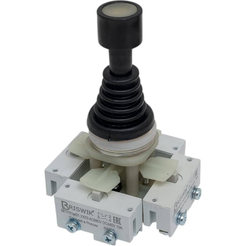 Крестовый переключатель Briswik ПК-12-21-822-54 УХЛ3 pk1221822.BR предназначен для коммутации электрических цепей управления переменного напряжения 380В частоты 50 и 60Гц, постоянного напряжения 220В. Применяется для комплектации панелей, пультов, шкафов управления металлорежущих станков и других подобных устройств, для управления которыми необходима мнемоническая связь между направлением перемещения рукоятки переключателя и направлением перемещения рабочего органа управляемого механизма.