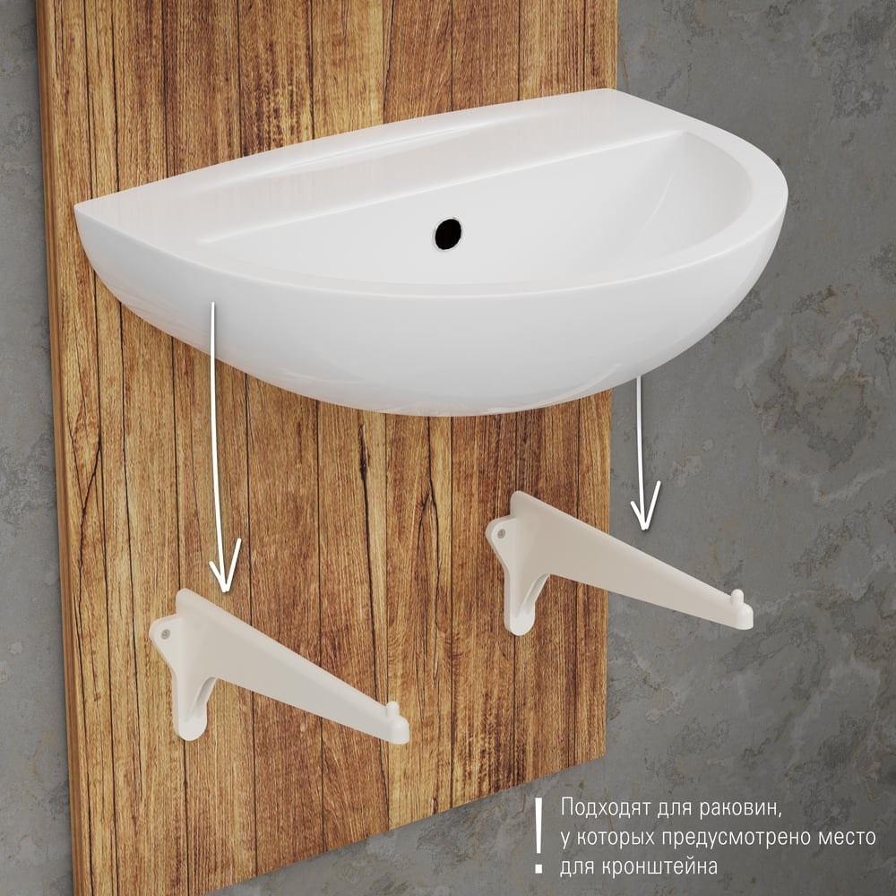 Комплект кронштейнов для умывальника обеспечивают его надежное и прочное крепление к стене. Производитель учел предстоящую нагрузку на крепеж, поэтому изделие выполнено из прочных материалов и рассчитано на длительное использование. Кронштейны для раковины крепятся к стене при помощи болтов (в комплект не входят).