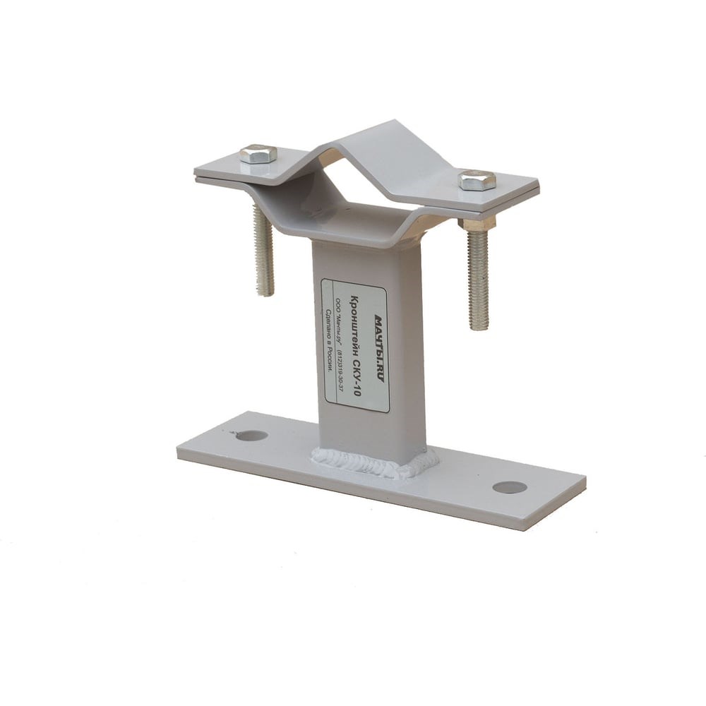 Кронштейн Мачты.ру СКУ-10 серый 201801301074 используется для крепления мачт, различных трубных секций (от 32мм до 75мм), - к стене (любой вертикальной поверхности), на расстоянии 100 мм от плоскости стены. Может использоваться просто, как универсальный кронштейн. Дополнительные характеристики: Основание - 160х50х3мм. Носик - нет. Косынки - нет. Крепежные отверстия - 2штх12мм.