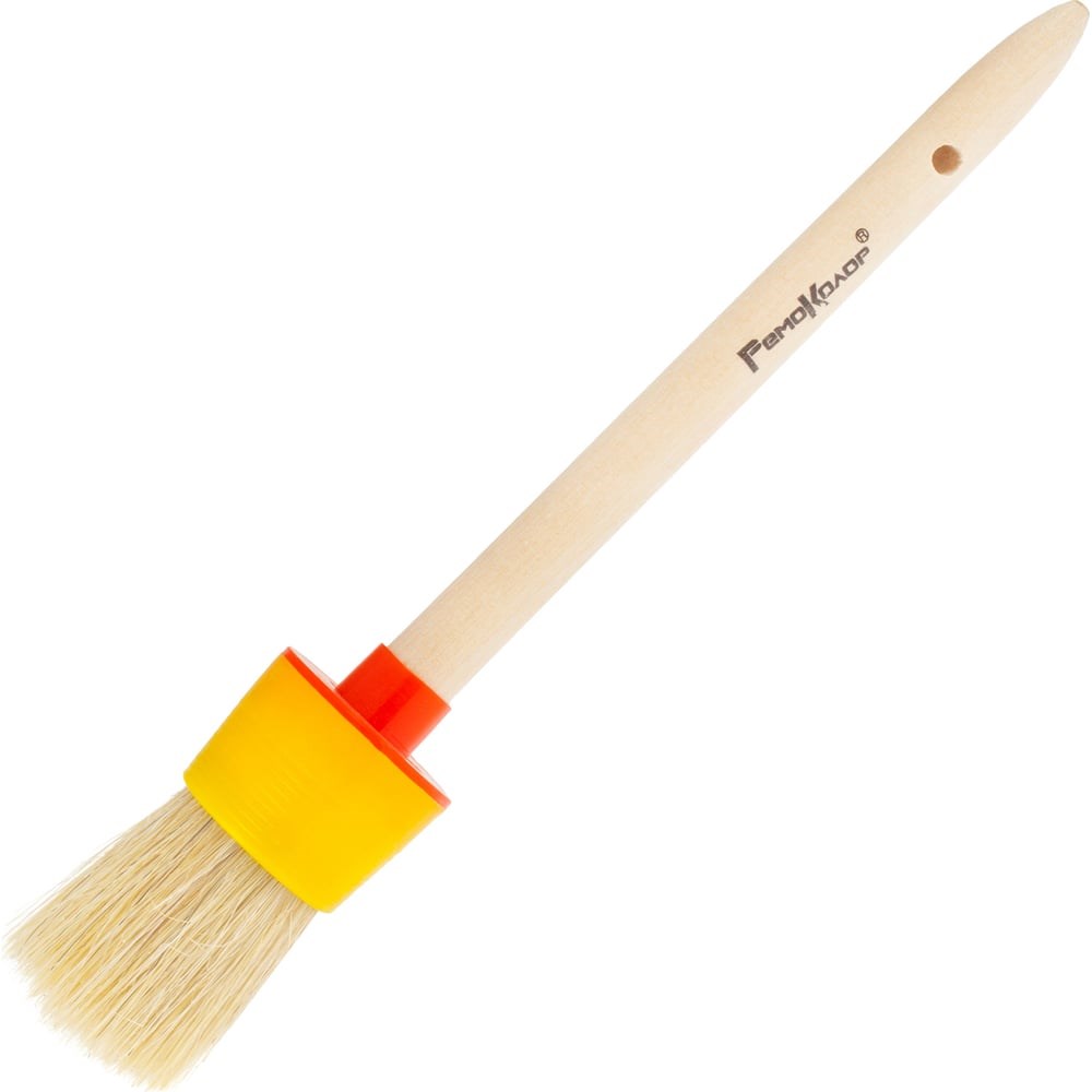 Круглая кисть №08, диаметр 35 мм РемоКолор 01-0-108 имеет натуральную щетину, которая обеспечивает равномерное нанесение лакокрасочных материалов на поверхность. Оптимальная длина ручки позволяет с удобством работать в труднодоступных местах.