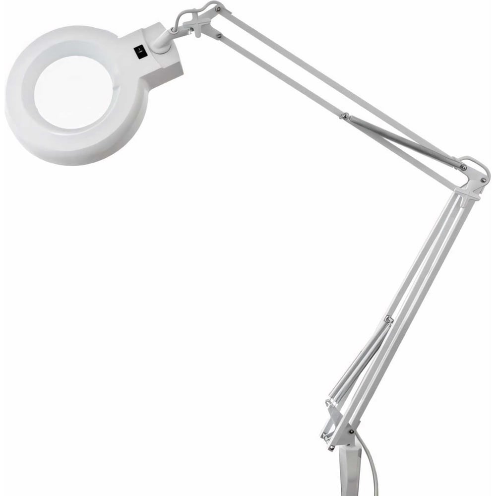 Лупа на струбцине предназначена для визуального увеличения различных мелких предметов или их фрагментов. Используется в косметологии, в тату-салонах, в биологии и медицине, в швейном и вышивальном деле, при выполнении ювелирных и радиомонтажных работ, ремонте часов. В состав оптической системы входят: линза, пантографический механизм, подсветка. Оптическая сила линзы – 5 диоптрии, что обеспечивает увеличение в 2,25 раза.Линза, выполненная из стекла, обеспечивает четкое изображение, а пантографический механизм – устойчивость и фиксацию. Вы сможете настроить расположение лупы так, как Вам удобно: радиус регулировки 100 см. Лампа излучает ровный свет без мерцания. В рабочем состоянии потребляет 22 Вт, что экономично.Устройство излучает ровный свет без мерцания, благодаря встроенному блоку управления.Размер линзы: 127мм. Цвет корпуса: белый.