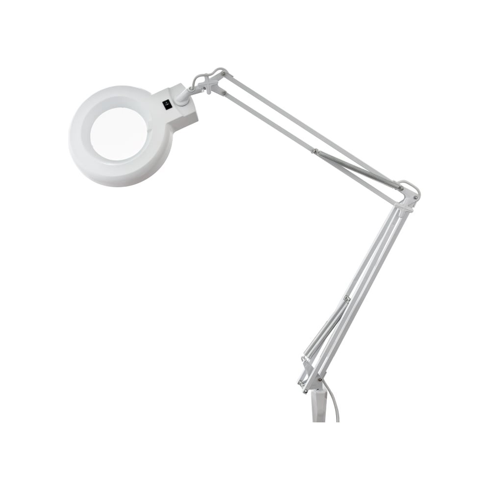 Лупа на струбцине круглой формы с подсветкой REXANT. Цвет изделия – белый. Оптическая сила линзы – 8 диоптрий, что обеспечивает увеличение в 3 раза. Широко применяется в быту и различных профессиональных сферах. Используется косметологами, татуировщиками, ювелирами, часовщиками, врачами и т.д. Популярна в любой области, где требуется визуальное увеличение предметов для более детального рассмотрения.Конструктивные преимущества: стеклянная линза, бестеневая всесторонняя подсветка, удобный пантографический механизм, рабочий радиус регулировки 100 см, струбцинное крепление, экономичное энергопотребление, встроенный электронный блок управления.