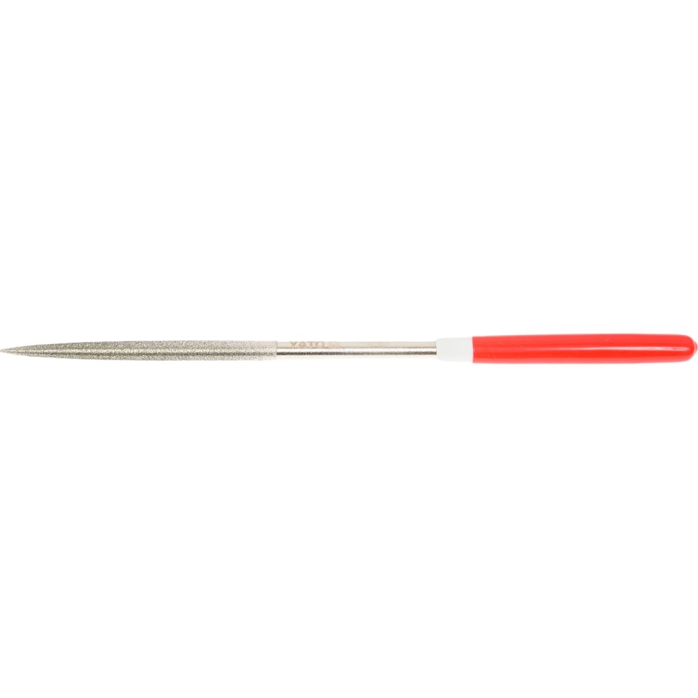 Алмазный надфиль YATO 5х180х70мм круглый YT-6154 имеет перекрестную насечку. Она позволяет работать с изделиями под любым углом. Тело инструмента изготовлено из углеродистой стали. Она имеет высокую прочность и слабо деформируется даже при большом усилии. Это позволяет работать максимально точно.