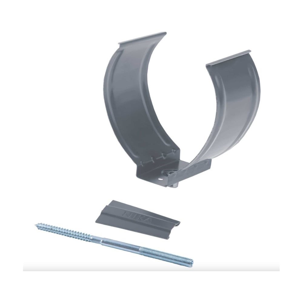 Круглый держатель трубы NIKA Zn, кирпич В0000019089 - элемент водосточной системы, применяемый для крепления водосточной трубы D100 к каменным и бетонным фасадам. Обеспечивает надежную и эстетичную фиксацию трубы к поверхности.