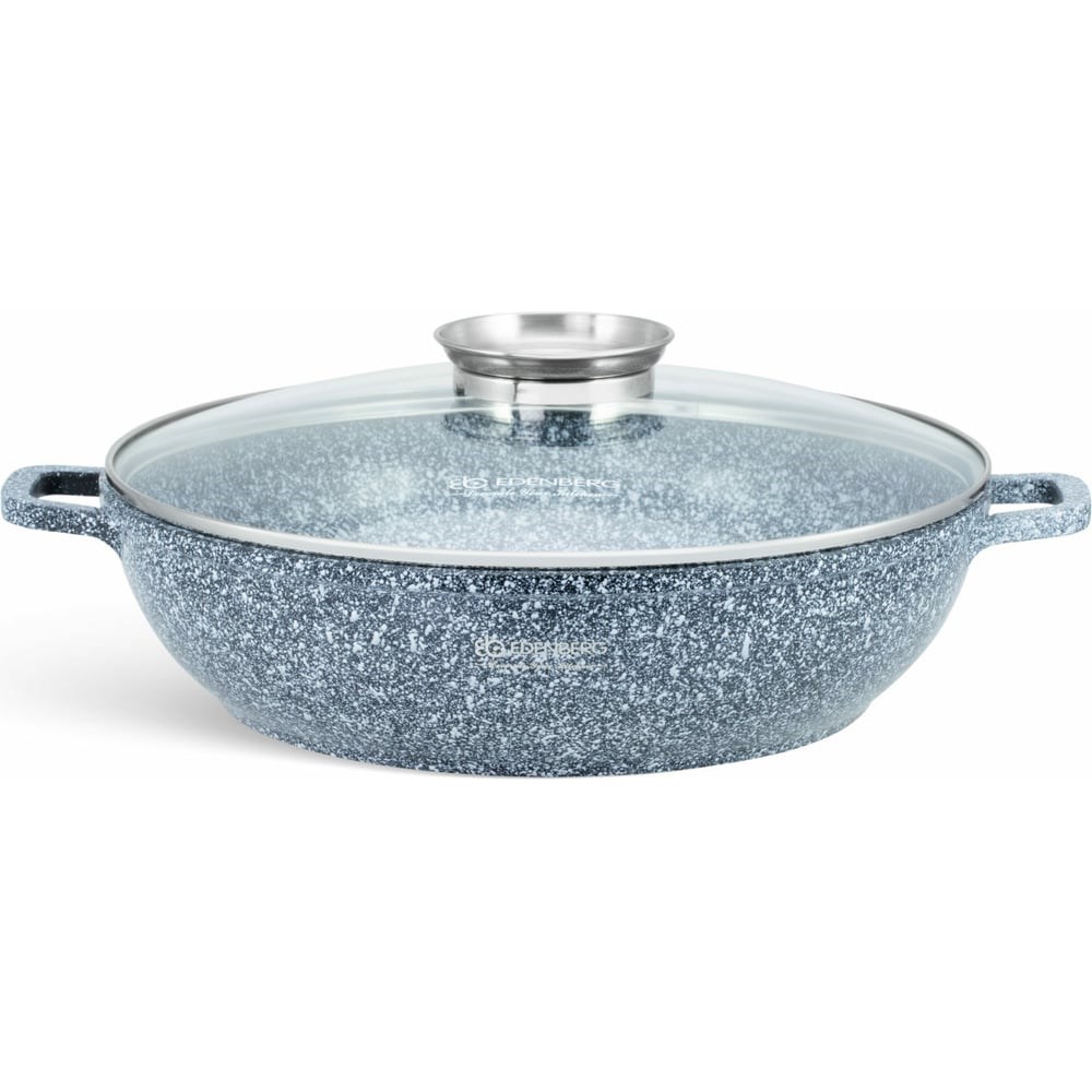 Круглый казан с крышкой EDENBERG 5.5 л , диаметр 32 см EB-8042 используется для приготовления пищи. Подходит для всех типов плит, включая индукционные.Алюминиевый корпусс обеих сторон имеет керамогранитное покрытие с дополнительным антипригарным слоем, не содержащим вредных веществ PFOA.Оно предотвращает пригорание продуктов и позволяет готовить с использованием минимального количества масла, а также обеспечивает высокую устойчивость к царапинам и термостойкость.Крышка изготовлена из закаленного стекла с отверстием для пара и с дозатором для масла и соусов.Изделие можно мыть в посудомоечной машине.Жаровня имеет трехслойное мраморное антипригарное покрытие, усиленное сверхтвердыми минералами нового поколения, не содержит вредных PFOA веществ, обладает высокой устойчивостью к истиранию, царапинам и другим механическим повреждениям. Благодаря своему составу, это покрытие легко мыть. Полученные в процессе эксплуатации мелкие царапины и небольшие потертости на поверхности посуды не влияют на свойства антипригарного покрытия и долговечность. Такое покрытие позволяет готовить здоровую пищу с минимальным количеством жира, продукты не пригорают и сохраняют свой вкус. Это является гарантией приготовления здоровой и полезной пищи, минимум воды и масла позволит сохранить максимум витаминов и других полезных веществ в ваших блюдах. В ручке крышки, сделано специальное отверстие, которое позволяет добавлять масло при приготовлении пищи, не снимая крышку.