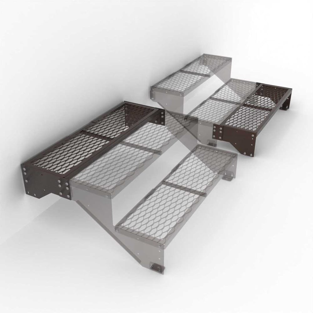 Удлинение первой или последней ступени на 300 мм., для лестниц серии ARSENAL AVANT раздел «ПВЛ». В комплект входит «рама – ступень» с просечно-вытяжным листом (ПВЛ)+ боковые удлинители направляющие+ крепеж. Другие модели лестниц, козырьков, навесов, перил Вы можете посмотреть по серии ARSENAL AVANT. Наши преимущества: - Каркас и рама изготовлены из сложно-гнутого профиля на станках ЧПУ лазерной резки ГОСТ Р ИСО 9013-2022 и гибки металла по ГОСТ18970-84. - От прогиба рамы посредине установлено Т- образное ребро жесткости. - Просечно-вытяжной лист (ПВЛ) на раме расположен в замкнутом металлическом контуре ( эстетический внешний вид, исключает зацепы за острые края). - Сварочные швы только изнутри рамы ( эстетический внешний вид, предотвращает коррозию на сварочных швах). - Отверстия - в наличии отверстия для крепления к стене, полу, перил. Возможность соединения дополнительных ступеней и рам между собой по ширине. - Окраска - электростатическая порошковая краска цвет по RAL 8017 (темно-коричневый, шоколад) шагрень. - Быстрая сборка, малогабаритная упаковка (помещается в легковой автотранспорт).