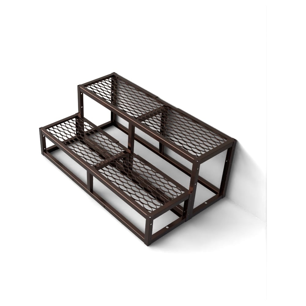 Каркас лестницы к дому на две ступени раздел «Универсал» с просечно-вытяжным листом (ПВЛ). Все каркасы лестниц и перил раздела «УНИВЕРСАЛ» совместимы для соединения друг с другом (фото 3). Другие модели лестниц, козырьков, навесов, перил Вы можете посмотреть по серии ARSENAL AVANT. Наши преимущества: - Каркас и ступени изготовлены из сложно-гнутого профиля на станках ЧПУ лазерной резки ГОСТ Р ИСО 9013-2022 и гибки металла по ГОСТ18970-84. Распределенная весовая нагрузка на ступени до 500 кг. - От прогиба ступени посредине установлено П- образное ребро жесткости. - Просечно-вытяжной лист (ПВЛ) на ступенях расположен в замкнутом металлическом контуре (эстетический внешний вид, исключает зацепы за острые края). - Сварочные швы только изнутри ступеней (эстетический внешний вид, предотвращает коррозию на сварочных швах). - Отверстия - в наличии отверстия для крепления к стене, полу, перил, придверной решетки для обуви. Возможность соединения дополнительных ступеней между собой по ширине и глубине (фото 4). - Окраска - электростатическая порошковая краска цвет по RAL 8017 (темно-коричневый, шоколад) шагрень. - Быстрая сборка, малогабаритная упаковка (помещается в легковой автотранспорт).