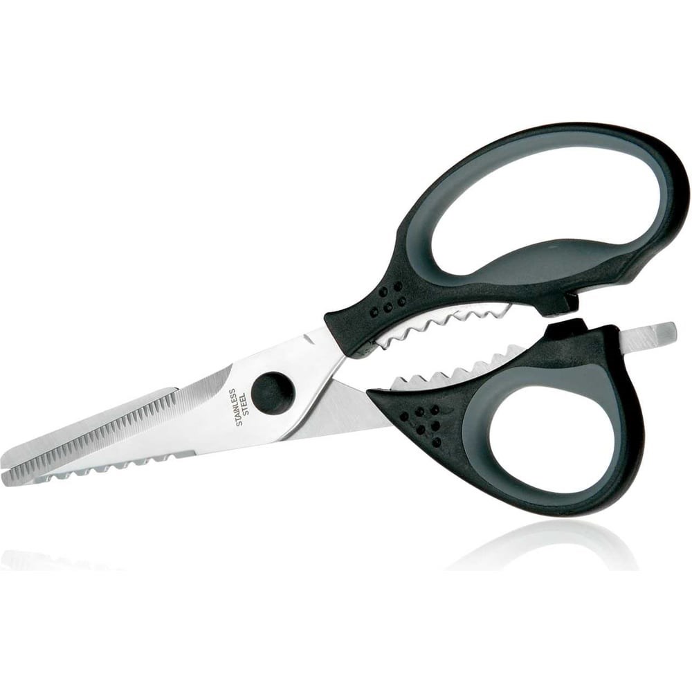 Кухонные ножницы марки Tojiro — это инструмент с дополнительным набором функций. Ими можно не только легко резать всё что угодно (плавники, пластиковые упаковки, разделывать курицу и т. д.), но и открывать банки, раскалывать орехи и выполнять другие манипуляции. Такой универсальный инструмент должен быть на любой кухне. Ножницы изготовлены из прочной стали, а ручки — из нескользящего пластика. Благодаря этому они удобны в применении и могут прослужить долго даже при интенсивной эксплуатации.