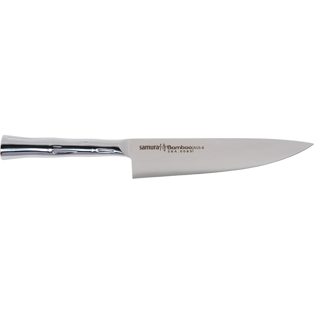 Многофункциональный европейский Шеф-нож 200 мм из серии Samura Bamboo предназначен для широкого спектра действий. При готовке Шеф может выполнять большую часть необходимых работ – им удобно и рубить, и нарезать, и шинковать.