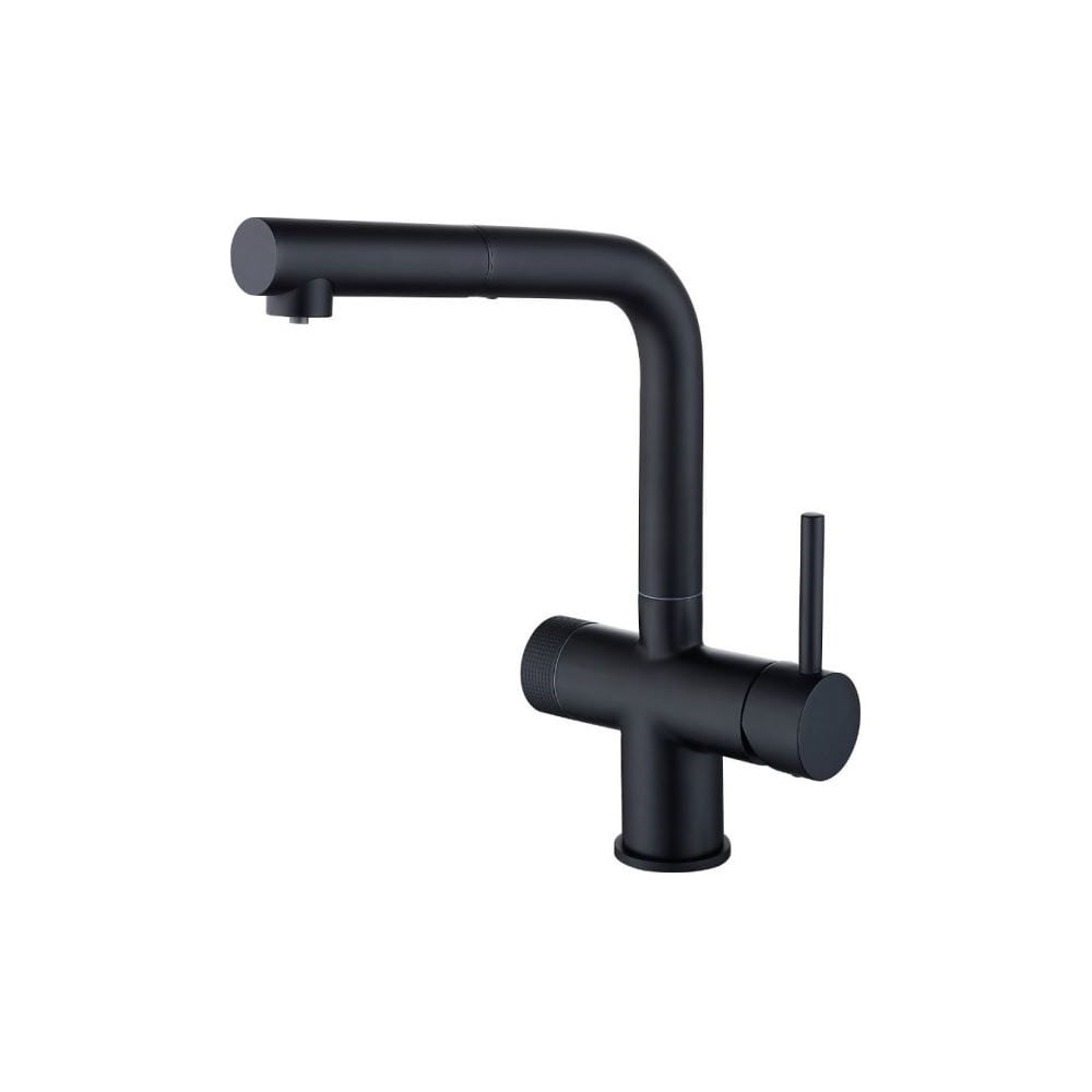 Кухонный смеситель с возможностью подключения фильтра для очистки воды. Фильтрованная вода подается отдельной ручкой через отдельную трубку и не смешивается с водопроводной водой. Однорычажное управление поможет легко регулировать температуру и напор подачи воды. Выдвижной излив увеличивает площадь и эффективность использования смесителя. Соответствует стандартам DIN DVGW.