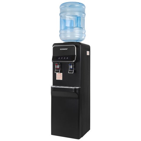 Кулер для воды SONNEN FSE-02WBc, напольный, НАГРЕВ/ОХЛАЖДЕНИЕ ЭЛЕКТРОННОЕ, шкаф, 2 крана, черный, 456168