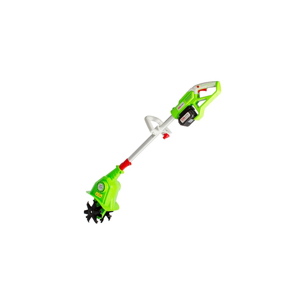 Культиватор аккумуляторный предназначен для обработки земли на небольших площадях: грядках, клумбах, цветниках, малогабаритных теплицах. Он оснащен фрезами с максимальной глубиной до 160 мм, шириной до 155 мм. Телескопическая штанга и прорезиненная рукоятка сделают процесс работы комфортным. Для защиты от случайного включения у культиватора есть кнопка-предохранитель. Наличие в комплекте АКБ и ЗУ дает возможность сразу приступить к обработке почвы.