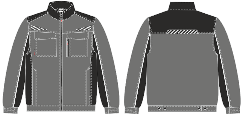 - Светоотражающие элементы расположены на плечевых кокетках, вставке на спинке и на рукавах, что обеспечивает повышенную видимость и безопасность
