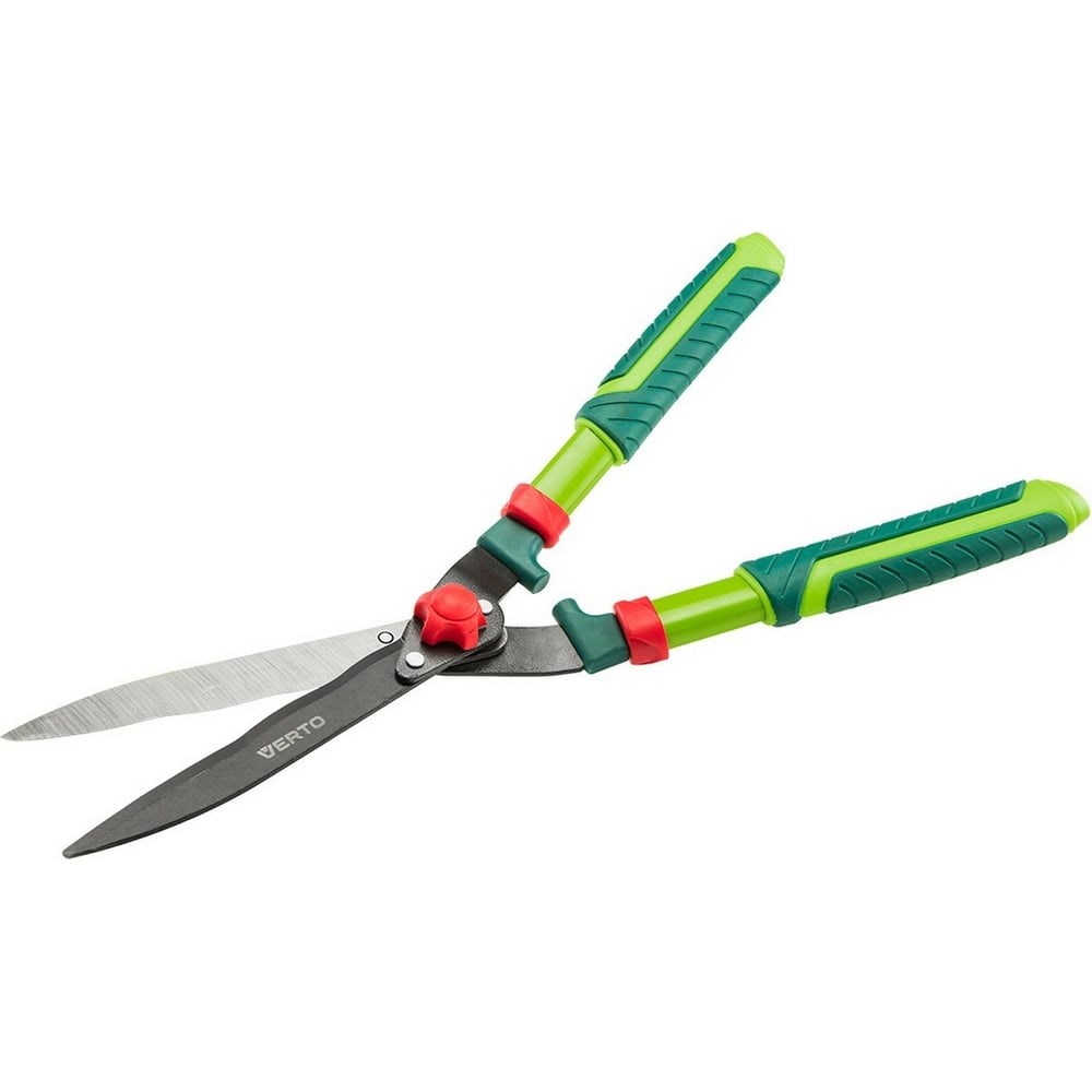 Ножницы для живой изгороди (с волнистыми лезвиями 550 мм, лезвие 200 мм) VERTO 15G311 удобны для резки тонких жестких веток. Тефлоновое покрытие надежно защищает лезвия от коррозии и уменьшает количество прилипших листьев. Рукоятки не скользят в ладони.