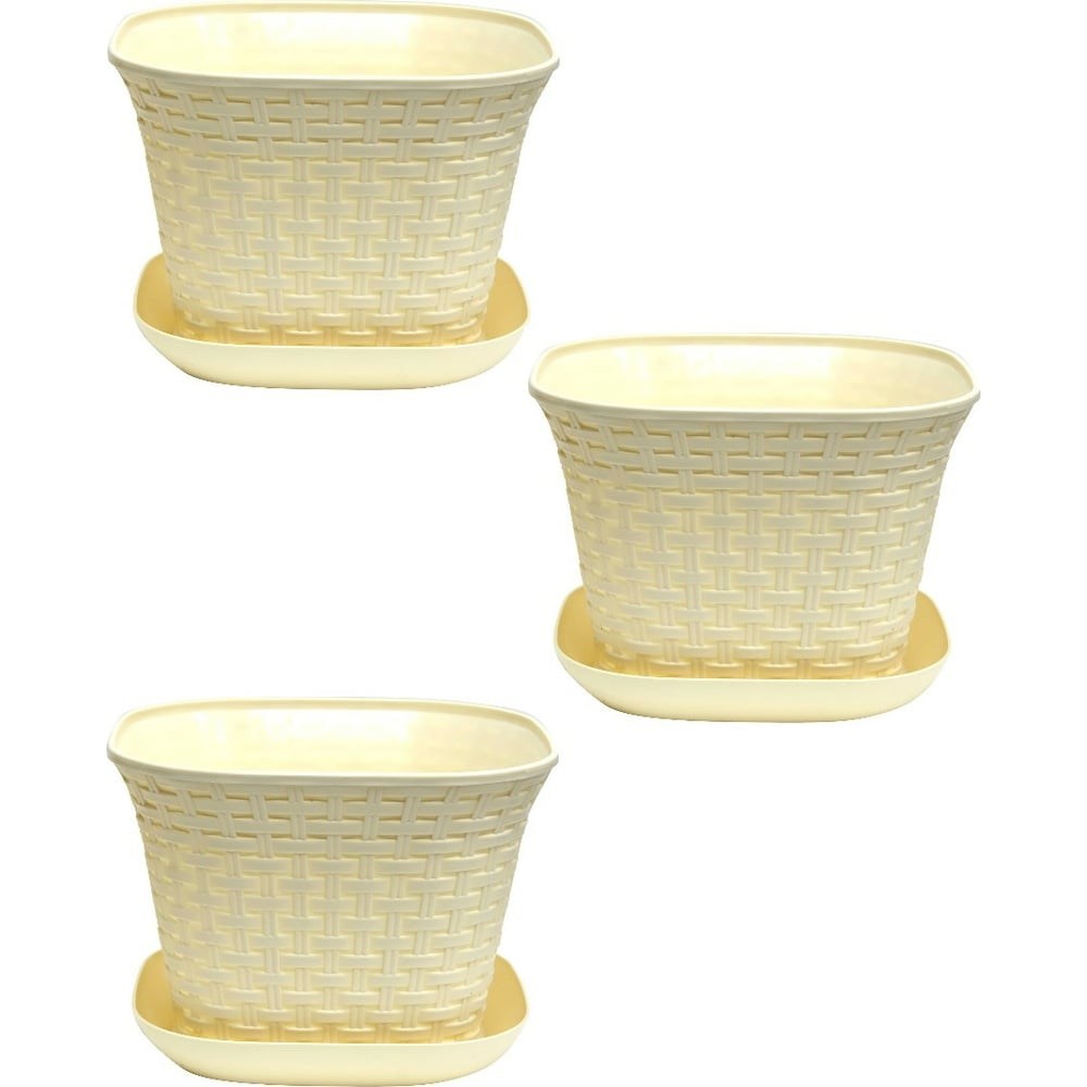 Кашпо Violet Ротанг 1.2 л, квадратное, с поддоном, 3 шт., слоновая кость N-Kahpo-3/-36121-26 - стильное решение для любого интерьера. Цветочный горшок выполнен из экологически чистого и безопасного материала и предназначен для живых, декоративных или искусственных растений. Кашпо из пластика прекрасно подойдёт для оформления подоконника, балкона, лоджии, зимнего сада, а также любых жилых и рабочих помещений, садовых и уличных пространств. Горшок для цветов имеет поддон (подставку), благодаря чему можно не беспокоиться о проблемах перелива или высыхания растения. Возможны два сценария использования: в качестве кашпо для размещения в нём горшка с растением и в качестве цветочного горшка с поддоном, для этого в дне кашпо в специальных местах можно легко продавить 2 отверстия, это обеспечит отток лишней влаги. Внутренняя сторона кашпо имеет гладкую фактуру, что препятствует прирастанию корней к стенкам горшка, облегчая процесс высадки растения и ухода за ним.