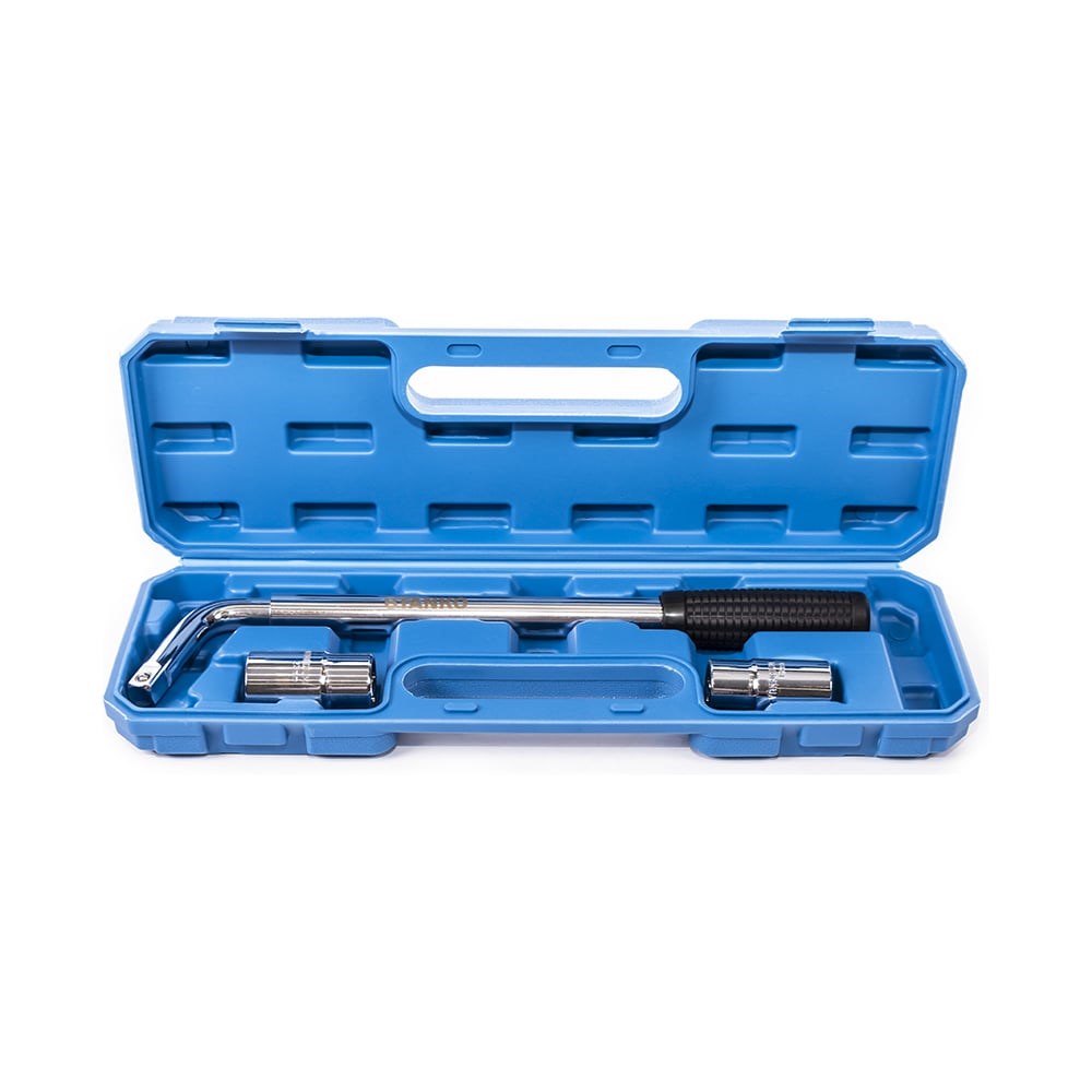 Назначение: Применяется для откручивания колесных гаек, при демонтаже автомобильных колес. Особенности: Ключ имеет телескопическую конструкцию, что обеспечивает, не только компактность хранения, но и помогает существенно снизить силу, нужную для откручивания прикипевшей гайки или болта. Размер изменяется в пределах 350-520 мм. Ключ имеет посадочный квадрат 1/2". Для обеспечения надежного удержания инструмента, имеется ручка из ПВХ. В комплекте поставки идут две универсальные двухсторонние головки с размерами 17/19 мм и 21/23 мм, а также специальный пластиковый кейс. Качество: Инструмент изготовлен из высококачественной хромованадиевой стали. Надежную защиту от коррозии обеспечивает высококачественное хром-никелевое покрытие.
