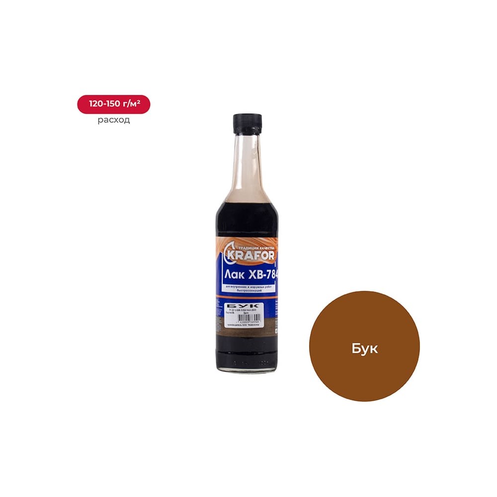 Предназначен для тонирования и защиты деревянных изделий, эксплуатирующихся в атмосферных условиях и внутри помещений. Состав: органические растворители, синтетические смолы, пластификаторы, красящие добавки. Расход: 120-150 г/м2 на однослойное покрытие. Время высыхания: 12 часов Метод нанесения: наносится кистью, валиком или тампоном. Лак наносится в 1-2 слоя с 2-х часовым интервалом. В случае сгущения необходимо разбавить толуолом. Срок годности: 24 месяца. Бук Лак быстросохнущий для наружных и внутренних работ ХВ-784 Придает благородный оттенок деревянным изделиям. Для изменения интенсивности цвета покрытия лак можно разбавить лаком ХВ-784 «Бесцветный».
