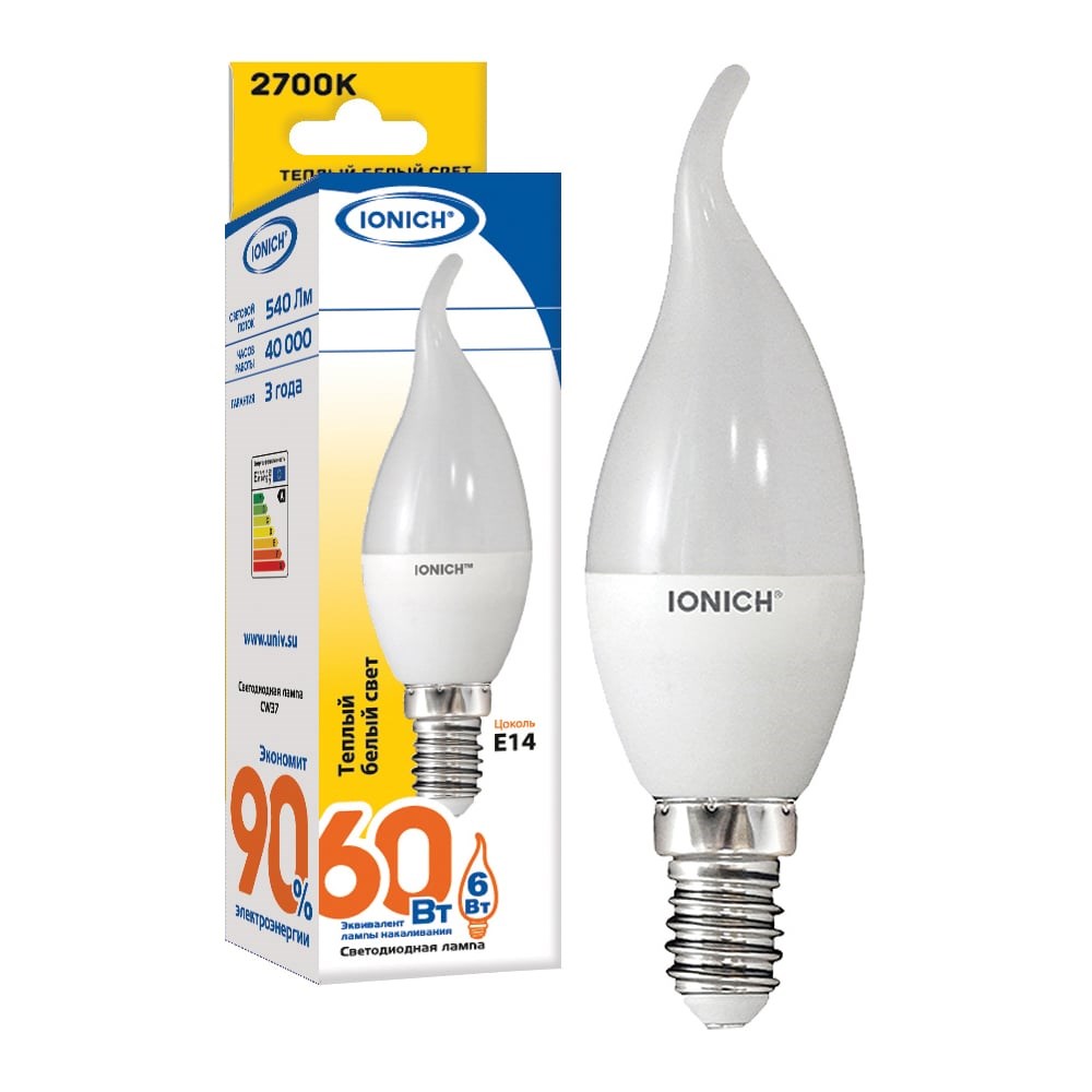 Лампа IONICH ILED-SMD2835-CW37-6-540-230-2.7-E14