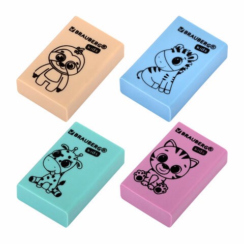 Ластик BRAUBERG KIDS "Школьный" имеет классическую прямоугольную форму, позволяющую стирать как мелкие, так и крупные штрихи. Он представлен в четырех пастельных цветах ассорти (без возможности выбора цвета). Забавный принт в виде милых животных вызовет улыбку у каждого, кто возьмет в руки этот ластик, и поможет превратить процесс стирания в веселую игру.
