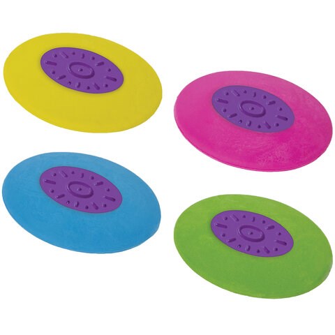Имеет овальную форму с пластиковым держателем фиолетового цвета. Поставляется в четырех цветах ассорти в картонном дисплее. Ластик обеспечит лёгкое и чистое стирание без повреждения поверхности бумаги и без образования бумажной пыли. Размер - 42х30х9 мм. Единица товара упакована в индивидуальный пакет со штрихкодом.