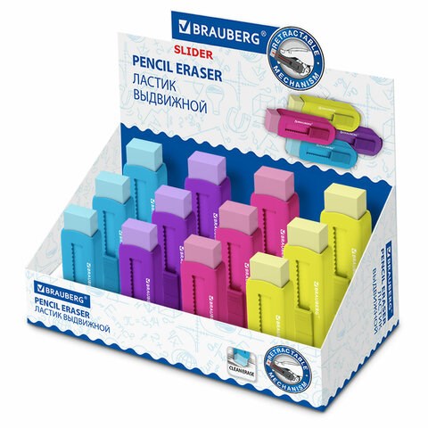 Ластик выдвижной BRAUBERG "Slider", 88х26х21 мм, яркие цвета корпуса ассорти, 271985