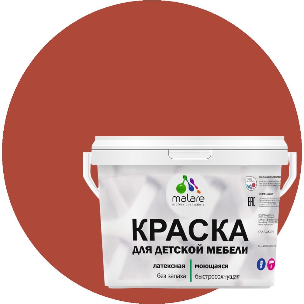 Краска для детской мебели MALARE (латексная; моющаяся; кирпичный; 10 кг) 2036766450771 выполнена на основе бельгийского полимерного латекса. Может применяться для защитно-декоративного окрашивания любых деревянных, минеральных и металлических поверхностей, как фасадных, так и интерьерных. Образует покрытие, устойчивое к многократному мытью с применением бытовых не абразивных моющих средств. Покрытие обладает высокими эксплуатационными характеристиками, такими как износостойкость (1 класс стойкости к истиранию по стандарту ISO 11998 / DIN EN 13 300). Создает влагоотталкивающую резиновую плёнку с отличной эластичностью. Подходит для вертикальных и потолочных поверхностей, благодаря высокой тиксотропности краска не образует подтёков. Не содержит органических растворителей, безопасна для здоровья, без запаха.