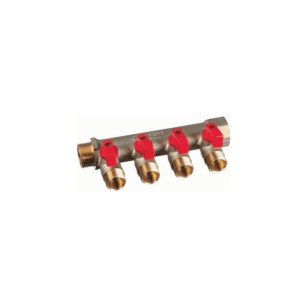 Коллектор латунный 3/4" в/н с 4-мя шар.кран. на 1/2" (наружная резьба) TERMA (14017) применяется для разветвления трубопроводов, а также позволяет изолировать часть системы в случае неисправности или ремонта без отключения всей системы. Коллектор ТЕРМА имеет трубную цилиндрическую резьбу (ГОСТ 6357, класс точности “В”) и предназначен для создания муфтовых соединений трубопроводов холодной, горячей воды, пара, жидких углеводородов, сжатого воздуха и прочих сред, не агрессивных к материалу коллектора. Рабочая температура используемой среды до +95°С, рабочее давление до 10 бар. Коллектора ТЕРМА производят из латуни марки CW 617N с никелированным покрытием.