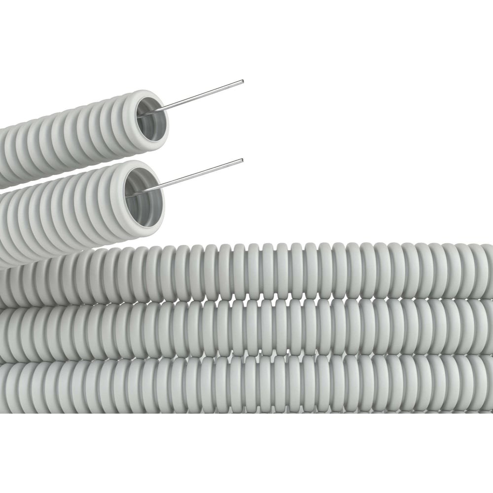 Гибкая гофрированная труба с протяжкой DKC ПВХ, д20мм, лёгкая, 50м, цвет серый 9192050 предназначена для прокладки электрического, компьютерного и телефонного кабелей. Труба этого типа прокладывается в стенных штробах, в пустотах фальш-потолков и фальш-стен, в стяжке полов или под фальш-полами. Проволочная протяжка облегчает прокладку кабеля в трубе. Материал – самозатухающий поливинилохлорид (ПВХ). Цвет - серый. Гофрированные трубы из ПВХ легкой серии могут эксплуатироваться при температуре от – 25 °С до + 60 °С.