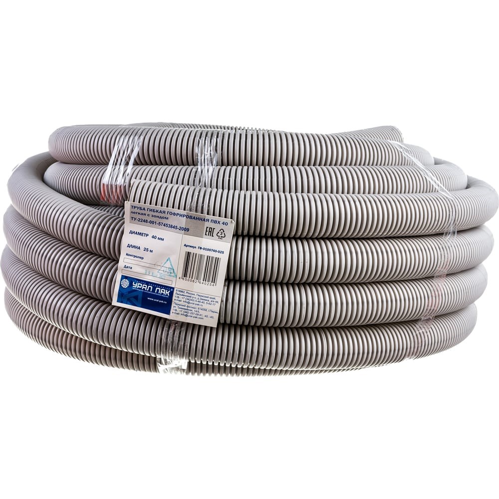 Легкая гофротруба УРАЛ ПАК ПВХ, с протяжкой -40 мм 25 м ГФ-0100740-025 применяется для монтажа скрытой и открытой проводки в потолках, стенах, гипсокартонных перегородках и фальшполах выполненных из трудносгораемых материалов.