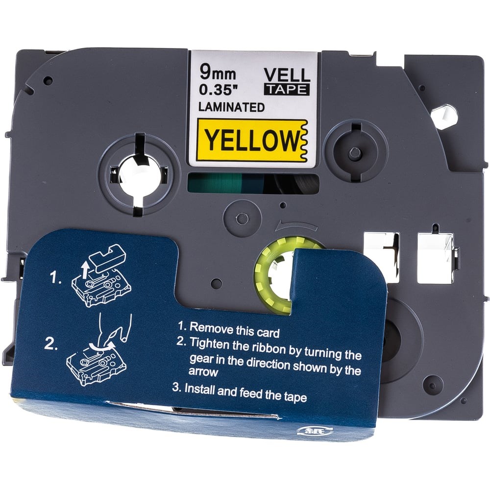 Лента Vell VL-621, Brother TZE-621 320056 подходит для принтеров: PT 1010/ 1280/ D200/ D210/ H105/ H110/ E100/ E110/ D450/ E300/ D600/ 2700/ P700/ E550/ 9700/ P900 отлично справляется с маркировкой проводов, камелей, а также прямых поверхностей. Длина 8 метров, ширина 9 мм, черный текст на желтом фоне.