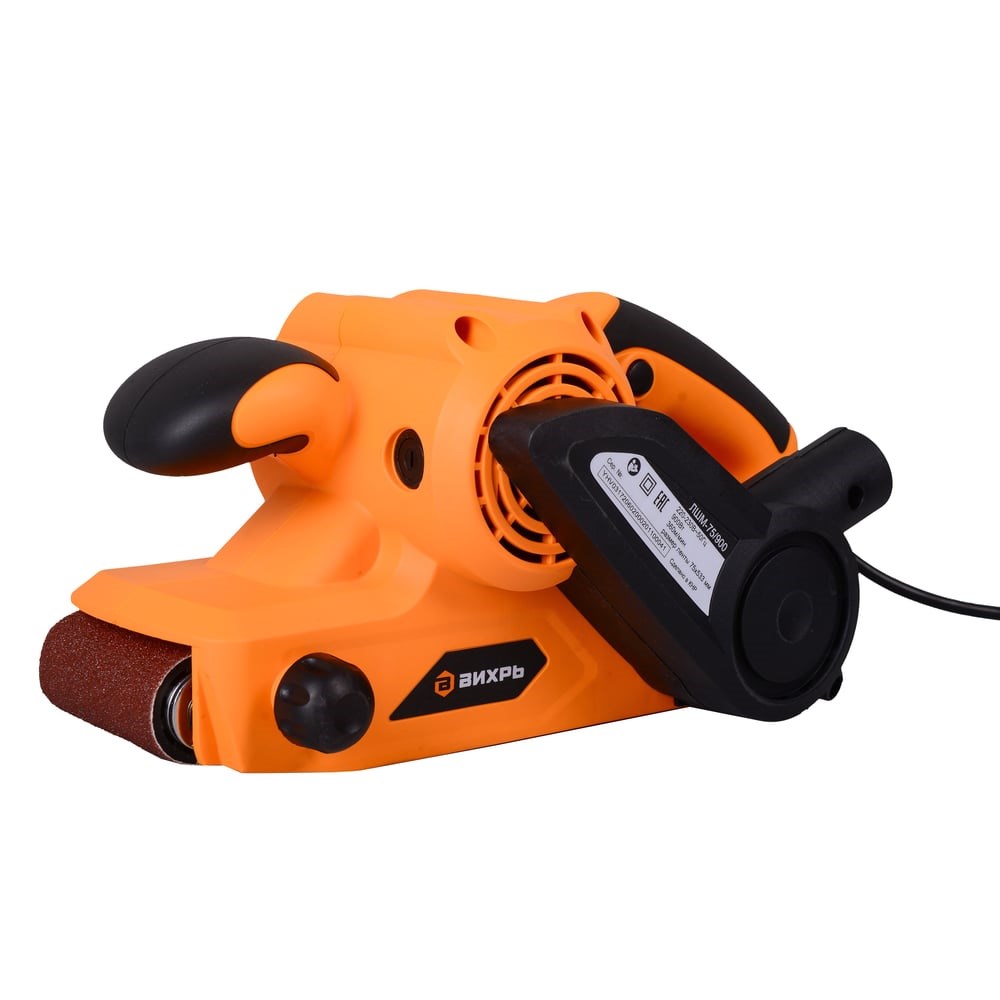 Ленточная шлифовальная машина с пластиковым корпусом модели Вихрь ЛШМ-75/900 – инструмент, предназначенный для сухой шлифовки разных типов поверхностей: всех видов металла, древесины и твердого пластика. Он также подходит для удаления следов старой краски и грунтовки перед повторным окрашиванием стен и предметов интерьера. Электроинструмент применяется для столярных и отделочных работ, с его помощью легко снять старый лак с поверхности мебели. Высокая скорость вращения абразива позволяет отшлифовать поверхность в короткий срок, но за ходом шлифовки необходимо тщательно следить.Шлифмашина Вихрь ЛШМ-75/900 компактна, но оснащена мощным электродвигателем, который выдерживает существенные нагрузки. Благодаря ленте с производительностью 360 м/мин возможна быстрая обработка больших площадей. Данная шлифовальная машина подходит для черновой шлифовки дерева и металла, а также применяется для финишной обработки металлических поверхностей. Модель оснащена специальным фиксатором кнопки пуска, благодаря которому оператор может работать дольше, не ощущая усталость. Комфорт пользователю обеспечивает и специальный патрубок для сбора пыли, благодаря которому даже при длительной шлифовке частицы обрабатываемого материала не оседают в воздухе.