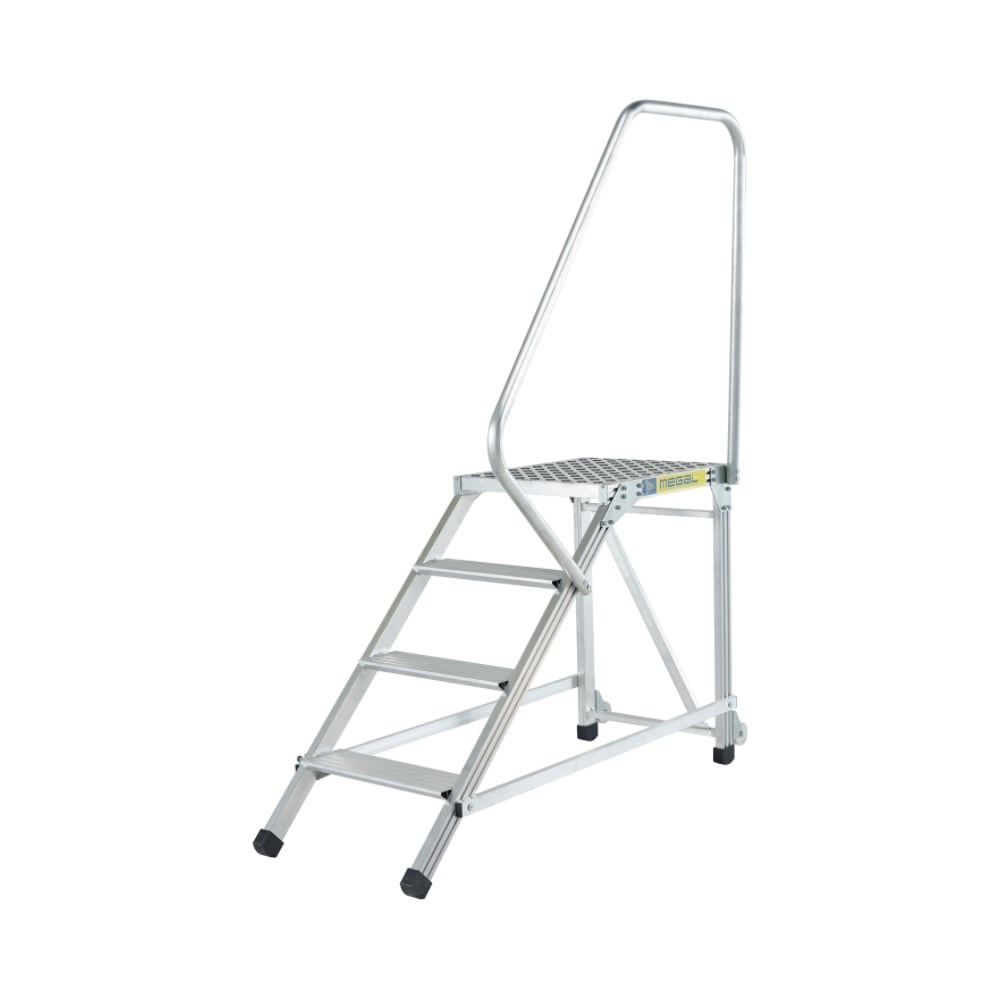 Лестница-подмости с одним поручнем MEGAL ЛП-0.6 051702 предназначена для обеспечения комфортных условий труда при выполнении монтажных, сервисных и других работ на небольших высотах. Сверху подмости укомплектованы поручнем, снизу – резиновыми противоскользящими башмаками. Для удобства перемещения по рабочей территории модель оснащена комплектом колес. Широкие ступени глубиной 16 см из специального рифленого профиля обеспечивают безопасный подъем и комфорт в работе. Верхняя площадка имеет размер 60х70 см. Наклонный лестничный маршрут расположен под углом 45 градусов. Обратите внимание! Количество ступеней не соответствует представленному на фото.