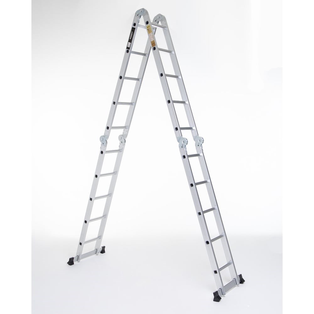 Лестница трансформер - это удобный универсальный инструмент для работ на разной высоте. Она может использоваться как двусторонняя стремянка, приставная лестница или помост. Стремянка объединяет в себе функции нескольких лестниц и подходит как для бытовых задач, так и для профессионального использования.Лестница алюминиевая состоит из нескольких секций, соединенных между собой шарнирами, которые обеспечивают подвижность, позволяя менять форму и положение лестницы. В сложенном виде конструкция очень компактна и легко помещается в шкаф, кладовку или багажник автомобиля.По обоим краям лестницы установлены поперечные опоры (траверсы) с пластиковыми наконечниками (“башмаки”). Они обеспечивают надежную фиксацию во время работы и предотвращают скольжение.Лестница трансформер 4х5 изготавливается из прочного алюминия, благодаря чему обладают небольшим собственным весом и стойкостью к коррозии: стремянку можно использовать на открытом воздухе и даже под атмосферными осадками. Стремянка 5 ступеней подойдёт для выполнения различных работ. Перемещать её не составит труда, так как лестница имеет небольшой вес и компактный габаритный размер. Ширина секции 350мм! Рифленые ступеньки обеспечат хорошее сцепление стопы с поверхностью. Противоскользящие заглушки из резинопластика не поцарапают полы и добавят конструкции устойчивости на скользких и неровных покрытиях. Максимальная нагрузка 150 кг, в режиме помост -100 кг.