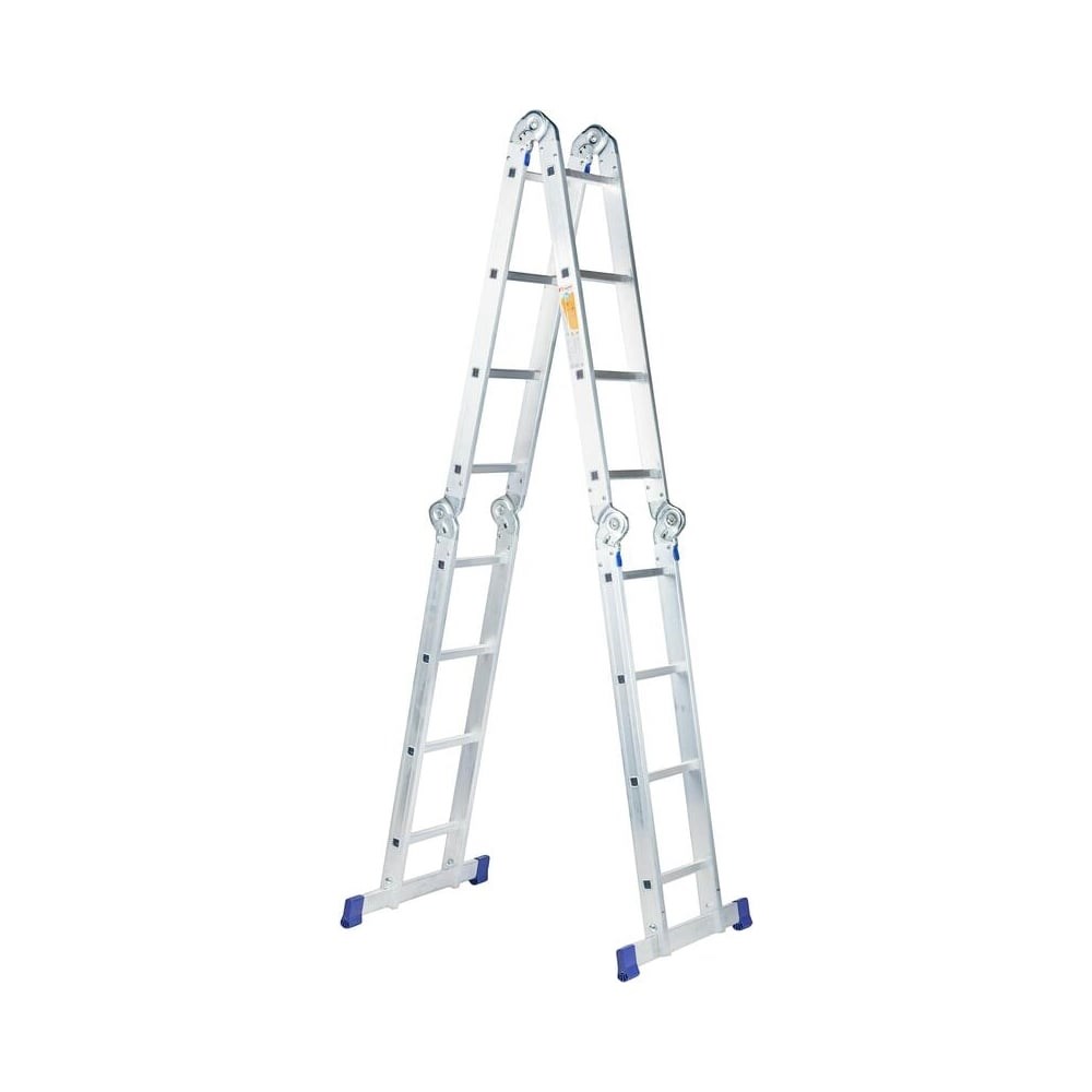 Лестница пригодится вбыту - дом, сад, гараж, атакже вкоммунальной истроительной деятельности.Лестница представляет собой 4 секции по4 ступени, которые можно настроить в4х рабочих положениях. Можно использовать вкачестве приставной лестницы, двухсторонней стремянки ипомоста.Преимущества изделия:Противоскользящее рифление наступенях— пользоваться лестницей безопасно, нога несоскользнет впроцессе выполнения работ;Сочетание легкости ипрочности— рама изготовлена изпрессованного алюминиевого профиля;Широкие траверсы— лестница устойчиво фиксируется нагоризонтальной поверхности влюбом рабочем положении;Надежные шарнирные механизмы— лестница нешатается врабочих положениях, смена рабочих положений происходит быстро илегко;Лестницу удобно хранить итранспортировать, благодаря компактным размерам всложенном виде.