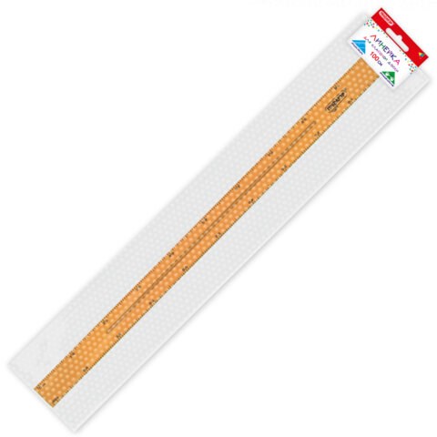 Линейка имеет четкую контрастную сантиметровую шкалу и эргономичный держатель по центру линейки. Длина шкалы составляет 100 см. Изготовлена из прочного пластика. Упакована в воздушно-пузырчатую пленку.