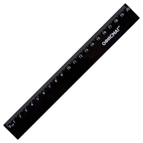 Линейка пластиковая 20 см, ОФИСМАГ, черная, пакет, 210777
