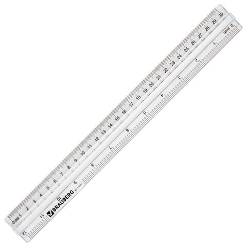 Прозрачная линейка из пластика с держателем. Длина шкалы составляет 30 см. Линейка обладает четкой разметкой, что делает ее удобной в использовании. Имеет двойную градацию шкалы (сантиметр, дюйм). Упакована в пластиковый пакет с европодвесом.