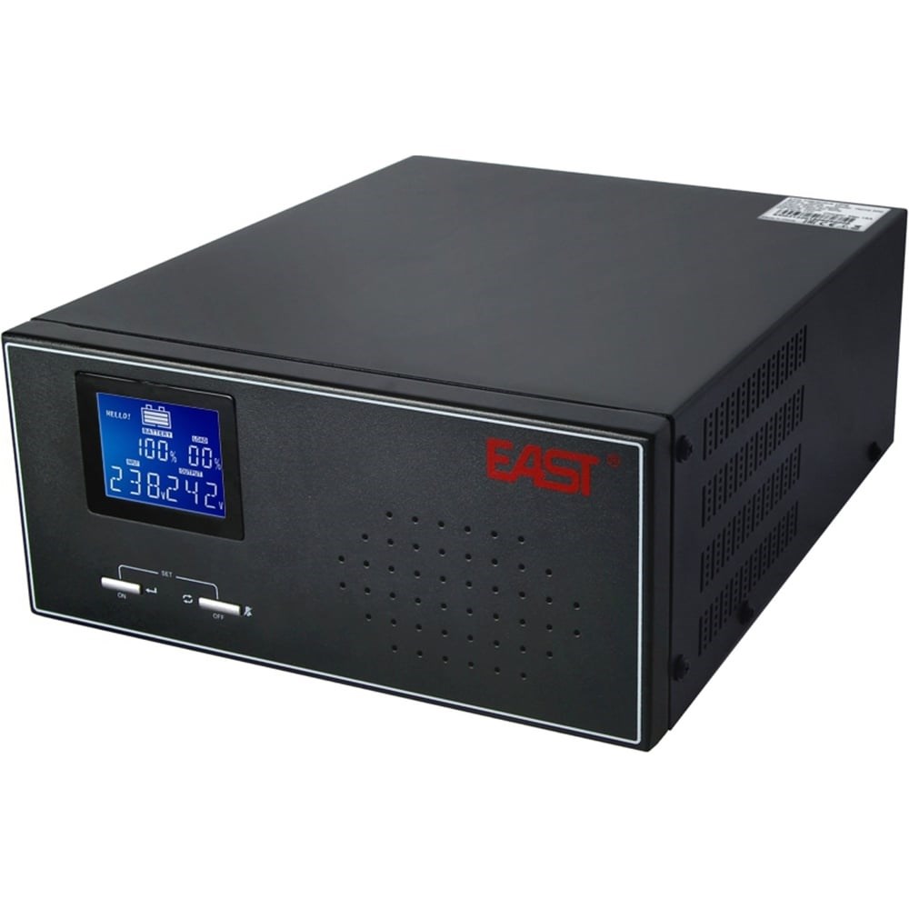 Линейно-интерактивный источник бесперебойного питания East без АКБ 600ВА Home 600 с чистой синусоидой, обеспечивающий длительное время автономной работы. Внутренних аккумуляторов не имеет, поэтому к нему подключается один внешний, отдельно приобретаемый аккумулятор большой емкости. В зависимости от емкости внешнего аккумулятора необходимо установить соответствующий ток заряда.