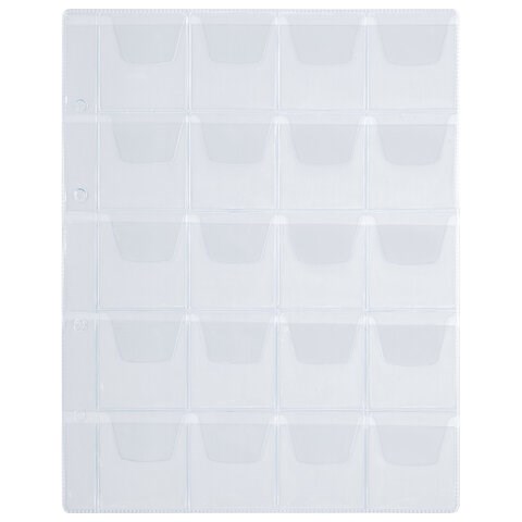Листы-вкладыши для альбома "OPTIMA" на 20 монет d до 40 мм, КОМПЛЕКТ 10 шт., 200х250 мм, ПВХ, STAFF, 238083