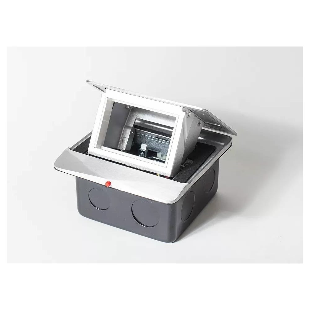 Дополнительные характеристики люка на 1,5 поста SPL 45x45, латунь, с металлической коробкой, IP44 300001:Верхняя панель: 120х120х8.5 мм;Металлическая коробка: 100х100х55 мм;Возможен монтаж, как в любые типы полов, так и непосредственно в рабочие столы.Количество вводов: 12 шт.