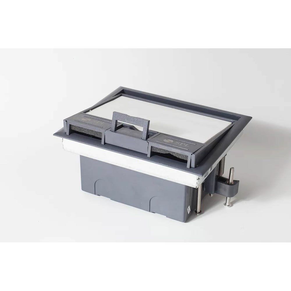 Дополнительные характеристикилюка на 4 поста SPL 45x45, металл/ пластик, с пластиковой коробкой, IP40 300005:Верхняя панель: 169х141,5 мм;Металлическая рама: 157х130х20 мм;Пластиковая коробка: 126х110,5х52-85 мм;Кол-во вводов: 10 шт.Съемная крышка с углублением 8 мм для напольного покрытия;Горизонтальное расположение суппортов;Наличие боковых креплений для фиксации лючка к поверхности;Возможен монтаж, как в любые типы полов, так и непосредственно в рабочие столы.