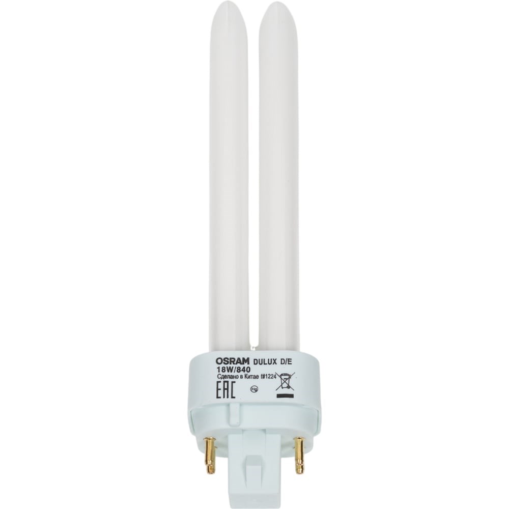 Компактная люминесцентная лампа неинтегрированная OSRAM DULUX D/E 18Вт с штырьковым одиночным четырехконтактным цоколем G24Q-2 и двухоборотными колбами.