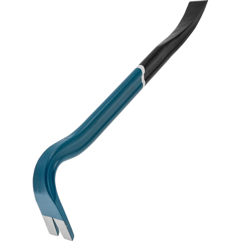 Лом-гвоздодер 450 мм GROSS 25236 применяется для вытаскивания гвоздей и используется как рычаг для приподнятия тяжёлых грузов. Изготовлен из рельсовой стали, что гарантирует высокую прочность. Двутавровый профиль усиливает инструмент на момент излома. Благодаря антикоррозионному покрытию повышен срок службы инструмента. дополнительные характеристики Габаритные размеры: 450х29х16 мм.