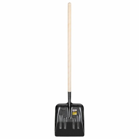 Лопата-ледоруб снеговая 33х37см "БУЛЬДОЗЕР" прочная РЕЛЬСОВАЯ СТАЛЬ, деревянный черенок, для мокрого снега, льда, щебня, ГРАНДМАСТЕР, 700334