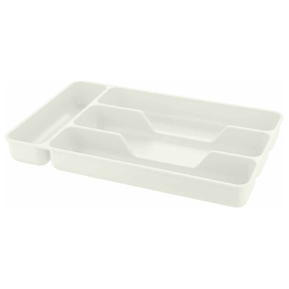 Лоток для столовых приборов Phibo 280х176х35 мм, светло-серый 433209207 - функциональный органайзер для посудного ящика. Лоток отличается компактностью: имея габариты всего 28х18 см он легко встанет в любой ящик, и при этом вместит все типы обеденных приборов. Производится из прочного полипропилена, не содержит бисфенол А. Можно мыть в посудомойке.