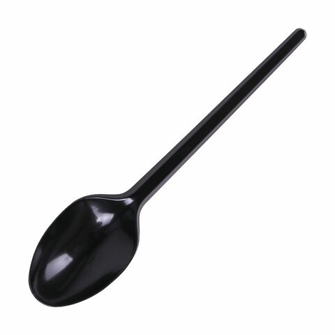 Ложка столовая одноразовая пластиковая 165 мм, черная, КОМПЛЕКТ 100 шт., СТАНДАРТ, LAIMA, 607833