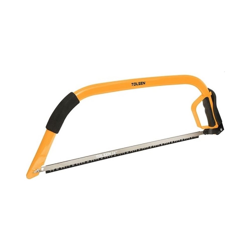 Лучковая пила по дереву TOLSEN с комбинированной рукояткой 610 мм 31082 используется для распила древесины. Полотно выполнено из инструментальной марганцевой стали, что обеспечивает прочность и долговечность. Трехсторонняя заточка и индукционная закалка зубьев гарантирует точный и качественный распил. Эргономичная двухкомпонентная рукоять обеспечивает надежный хват.
