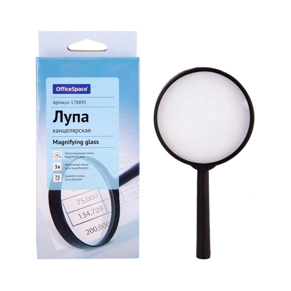 Лупа OfficeSpace 75 мм, 3-х кратное увеличение, картонная коробка MGF75_1534/178895 предназначена для увеличения предметов, деталей, чтения мелкого текста. Лупа выполнена из прочного материала и не подвержена деформации. Модель обладает возможностью трехкратного увеличения, что способствует рассмотрению даже самых мелких деталей. Рукоятка обеспечивает комфортное пользование лупой.